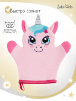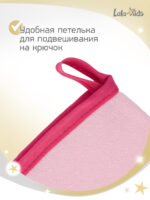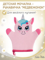 Благодаря своей форме варежки, мочалка легко надевается на взрослую и детскую руку. Детская мочалка быстро впитывает воду и мыло, образуя обильную пену, которая помогает тщательно очистить кожу. После использования мочалку для малыша легко промыть и подвесить для высыхания благодаря специальной петельке.