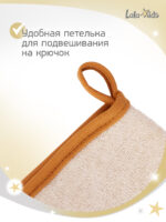 Благодаря своей форме варежки, мочалка легко надевается на взрослую и детскую руку. Детская мочалка быстро впитывает воду и мыло, образуя обильную пену, которая помогает тщательно очистить кожу. После использования мочалку для малыша легко промыть и подвесить для высыхания благодаря специальной петельке.