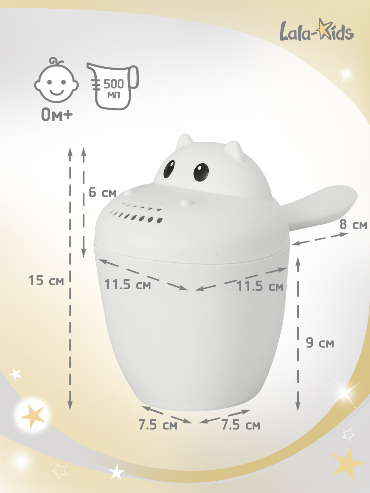 Ковшик для купания в виде забавного бегемотика поможет вам превратить купание малыша в весёлую и увлекательную игру! Детский ковшик имеет удобную ручку, которая не выскользнет из рук, а легкий вес позволит малышу без усилий держать его в руках. Съемная крышка детского ковша выполнена в форме лейки и будет удобна для мытья тела, головы и лица малыша.